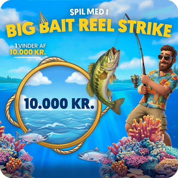 - Spiller du for 2 kr. i Big Bait i perioden fra 17/4 kl. 08.00 til 19/4 kl. 23.59, deltager du automatisk i konkurrencen om at vinde: 10.000 kr.