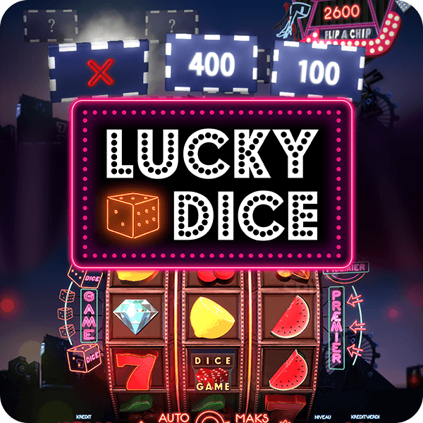 Lucky Dice har både neonlys, velkendte symboler, og chancen for Jackpot og Super Jackpot!