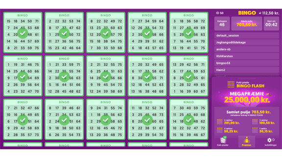 Klar til at blive en del af Danmarks hyggeligste bingo? SpilNu.dk inviterer dig til en uforglemmelig bingooplevelse, hvor hygge og spænding går hånd i hånd. Spil med for kun 2,50 kr, og få chancen for at vinde den storslåede Megapræmie på 25.000 kr.! Vær med i vores fællesskab, hvor hyggelige stunder og store gevinster venter.
